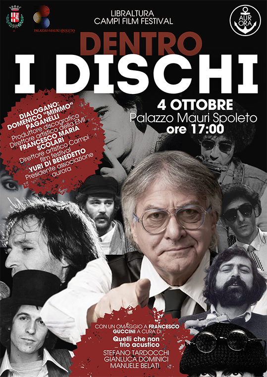 Sarà un incontro con Domenico Paganelli, produttore discografico e direttore artistico della EMI, che dialogherà con Francesco Maria Scolari, direttore di Campi Film Festival e Yuri Di Benedetto, presidente della Associazione Aurora, per scoprire come nasce un disco, tra racconti, aneddoti e storie di chi ha lavorato con i più grandi cantautori italiani.
