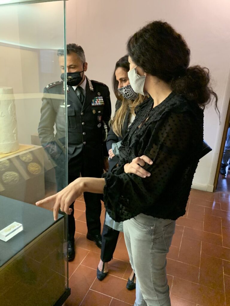 Oltre 500 monete provenienti da Spoleto, frutto di un recupero risalente al 2019 e recentemente assegnato alle collezioni del Museo Archeologico e Teatro Romano di Spoleto, sono state presentate domenica in occasione delle Giornate Europee del Patrimonio. Erano presenti insieme alla direttrice Silvia Casciarri, il Colonnello Guido Barbieri, comandante del Nucleo Tutela Patrimonio Culturale di Perugia, e l’esperto numismatico dott. Samuele Ranucci, funzionario archeologo del Segretariato regionale del MiBACT. Si tratta del più cospicuo nucleo di monete proveniente dall’area urbana Spoletina, che ci fornisce utili informazioni sulla circolazione monetaria a Spoleto e sulla via Flaminia per un periodo di tempo che si estende per più di 2000 anni, dal III secolo a.C. fino all’età moderna.