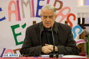 (DMN) Spoleto – Si è svolto nella Chiesa di Santa Rita, nel pomeriggio del 15 dicembre, il terzo ed ultimo incontro in programma nell’edizione 2016 di ‘dialoghi in citta’, l’iniziativa culturale proposta dall’Archidiocesi di Spoleto-Norcia iniziata negli anni ’80 con mons. Alberti e proseguita poi con mons. Fontana, fino ad arrivare a mons. Boccardo. Dopo il Vescovo di Novara mons. Brambilla e la prof.ssa Morresi, il relatore dell’ultimo incontro è stato Padre Federico Lombardi , sacerdote, appartenente alla Compagnia del Gesù e giornalista, già Direttore della Sala Stampa della Santa Sede e dallo scorso agosto Presidente del Consiglio di Amministrazione della Fondazione vaticana Joseph Ratzinger – Benedetto XVI. Prima che padre Lombardi iniziasse ad esporre la propria relazione sul tema ‘la Chiesa in cammino con Papa Francesco’, l’Arcivescovo diocesano , mons. Renato Boccardo, ha salutato i presenti e dopo aver illustrato la figura del gesuita gli ha chiesto di raccontare Papa Francesco da vicino, essendo lui uno dei più stretti collaboratori di Bergoglio e confratello gesuita del Papa. Padre Lombardi ha poi preso la parola manifestando la propria soddisfazione di essere a Spoleto per aver ricevuto l’invito di un amico, un collaboratore di vecchia data, ovvero mons. Boccardo. Padre Lombardi ha illustrato i grandi temi che caratterizzano il pontificato del Papa argentino e gli interrogativi che lo stesso pone ai fedeli e pone a se stesso. Per primo ha citato il tema dei migranti, dello spostamento dei popoli da un paese all’altro, ricordando che primi viaggi di Papa Francesco sono stati fatti proprio in territori dove il migrare dei popoli si vive quotidianamente sia in entrata che in uscita. La seconda questione esaminata dal gesuita sono stati i cambiamenti della condizione umana che va di pari passo con i progressi della della medicina, della scienza ed i nuovi modi di vivere i rapporti tra le persone trasfomati in maniera sensibile anche dai nuovi media. Successivamente Lombardi ha anche toccato gli scottanti temi dei cambiamenti economici, dei conflitti e della violenza fino ad arrivare, in conclusione, al tema alla riconciliazione con le creature e al rispetto del creato citando l’enciclica di Bergoglio, ‘Laudato si”. ‘Francesco- ha detto Padre Lombardi – guarda al mondo dai margini non dal centro, non a caso (riferendosi al tema dei migranti ndr) i suoi primi viaggi da Papa li ha fatti a Lampedusa, a Lesbo ed in Albania e non a Parigi, Londra e nelle capitali europee’. Lombardi ha poi ricordato due passi del Vangelo, che il Papa cita spesso nei discorsi che poi sono alla base del Ministero petrino di Bergoglio, ovvero le Beatitudini ed il Giudizio Universale. Nella seconda parte dell’incontro si è aperto un vero e proprio dialogo tra Lombardi ed i presenti, nel quale sono state poste al gesuita domande su aneddoti e curiosità riguardanti il Vescovo di Roma. ‘Cosa ho pensato quando il Card. Bergoglio é stato eletto Papa? Sono rimasto allibito, solitamente un gesuita non vuole ricoprire incarichi nella Chiesa, pensi (rivolgendosi alla suora che ha posto la domanda ndr) che noi accettiamo con fatica anche di diventare Vescovi, figuriamoci Papi’ .
