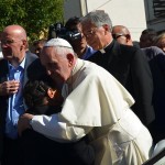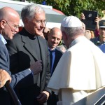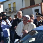 Papa Francesco nella giornata di martedì 4 ottobre, festa di S. Francesco dAssisi, ha visitato le zone del centro Italia colpite dal terremoto lo scorso 24 agosto. Quando all’inizio della giornata si è diffusa la notizia della presenza del Papa ad Amtrice, è iniziato un rincorrersi di voci su una possibile visita a Norcia. Alle 11.30 l’Arcivescovo Renato Boccardo ha avuto la conferma: il Papa sarà a San Pellegrino di Norcia, la frazione più colpita dal sisma, dichiarata zona rossa, alle 17.00. Alla fine però Francesco è giunto alle 15.00 al crocevia tra S. Pellegrino e Frascaro, dove ha incontrato e salutato mons. Boccardo e lo ha invitato a salire nella sua automobile. Insieme sono andati nella zona rossa del paese, passando tra la gente che applaudiva e gridava: viva il Papa. Lungo il breve tragitto il Vescovo ha descritto al Pontefice il territorio nursino e gli ha raccontato come questa popolazione per la terza volta, dopo il 1979 e il 1997, deve confrontarsi con la catastrofe del terremoto. Francesco si è raccolto in una preghiera silenziosa e solitaria davanti ai massi del campanile crollato della chiesa di San Pellegrino di Norcia, simbolo umbro di questo ulteriore sisma, e ha benedetto le macerie. Si è poi congratulato con i Vigili del Fuoco presenti dicendogli: «Grazie, siete davvero coraggiosi». E uno di loro: «Padre Santo pochissimi prima del suo arrivo abbiamo avvertito una scossa di magnitudo 3.6 che ha ulteriormente danneggiato gli edifici del paese». A San Pellegrino, la tendopoli è stata recentemente smantellata (le persone, in attesa delle casette di legno, sono momentaneamente ospitate nelle strutture ricettive della zona) e i numerosi fedeli hanno atteso Francesco nello slargo a ridosso della zona rossa del paese, dinanzi alla tenda dove viene normalmente celebrata la Messa. Il Vescovo di Roma ha salutato le persone usando il microfono di unautovettura della Polizia di Stato: «Saluto tutti voi. Sono stato vicino a voi e mi sento molto vicino in questo momento di tristezza e prego per voi e chiedo al Signore che dia la forza di andare avanti. E adesso vi invito a pregare tutti insieme l’Ave Maria».