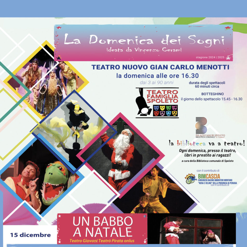 Appuntamento natalizio, inserito in “Accade a Natale a Spoleto” al Teatro Nuovo “Gian Carlo Menotti” per La domenica dei sogni, la rassegna di teatro famiglia ideata da Vincenzo Cerami per promuovere l’amore per il teatro tra le giovani generazioni.