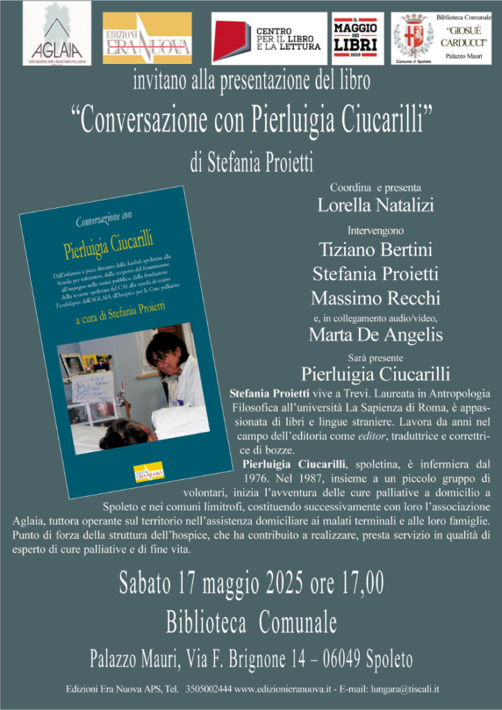 Sabato 17 maggio alle ore 17.00 si terrà la presentazione del libro “Conversazione con Pierluigia Ciucarilli” di Stefania Proietti, Edizioni Era Nuova APS.