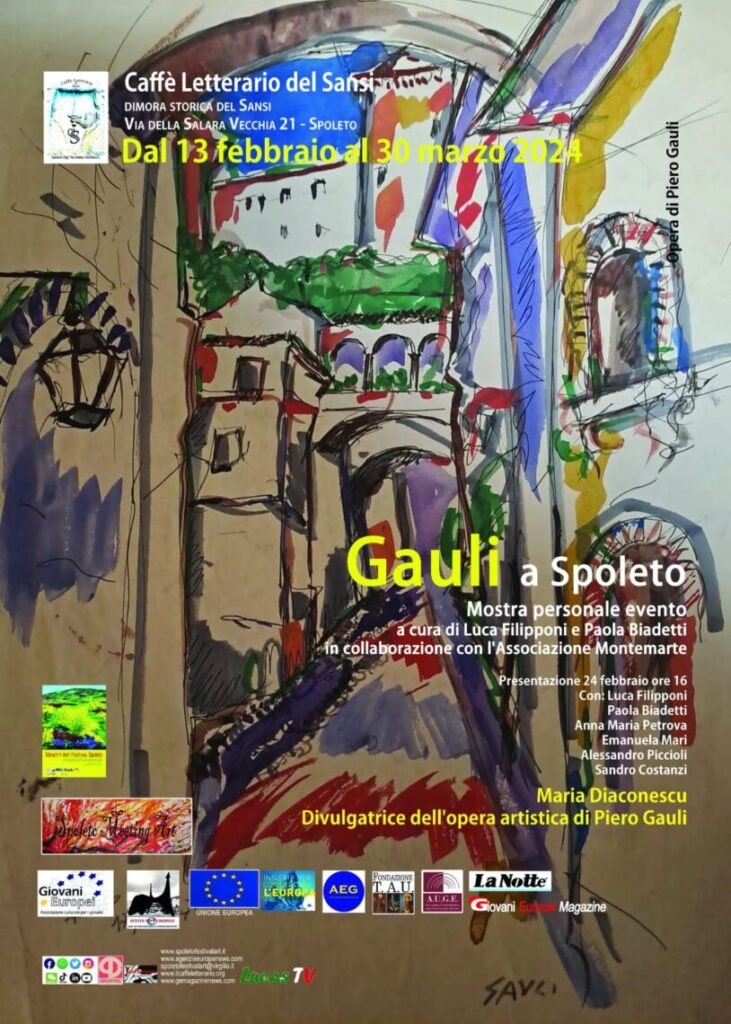 viene presentata sabato a Spoleto alle ore 16 con la presenza , oltre che dei curatori di altri importanti ospiti ed interlocutori : Sandro Costanzi, Emanuela Mari, attrice e musicista, Alessandro Piccioli, Maria Cristina Mancini, Francesco Ansidei, gallerista e perito d’arte, Anna Maria Petrova, attrice e giornalista, Maria Diaconescu, divulgatrice dell’Opera artistica di Piero Gauli.