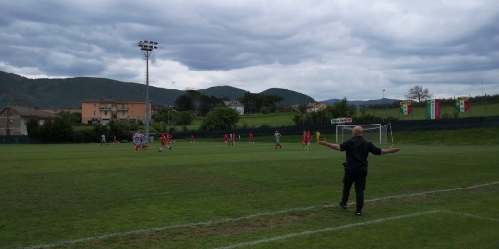 Dopo soli 5′ di gara l’AMC98 passa in vantaggio con un colpo di testa di Grigioni su calcio d’angolo. Lo Spoleto non si perde d’animo e crea azioni pericolose per tentare di agguantare il pareggio. Quando sembra tutto perduto, nell’ultimo giro di lancette della finale play out, é Piermarini, subentrato dalla panchina, a sigillare una straripante azione di Huzuneanu con la rete del pari che consente ai ragazzi di Lo Vaglio di portare la sfida ai tempi supplementari.