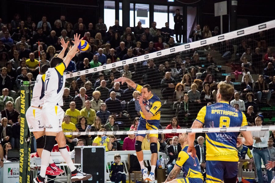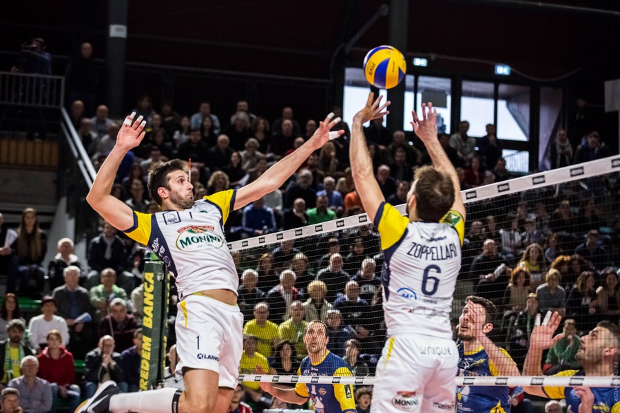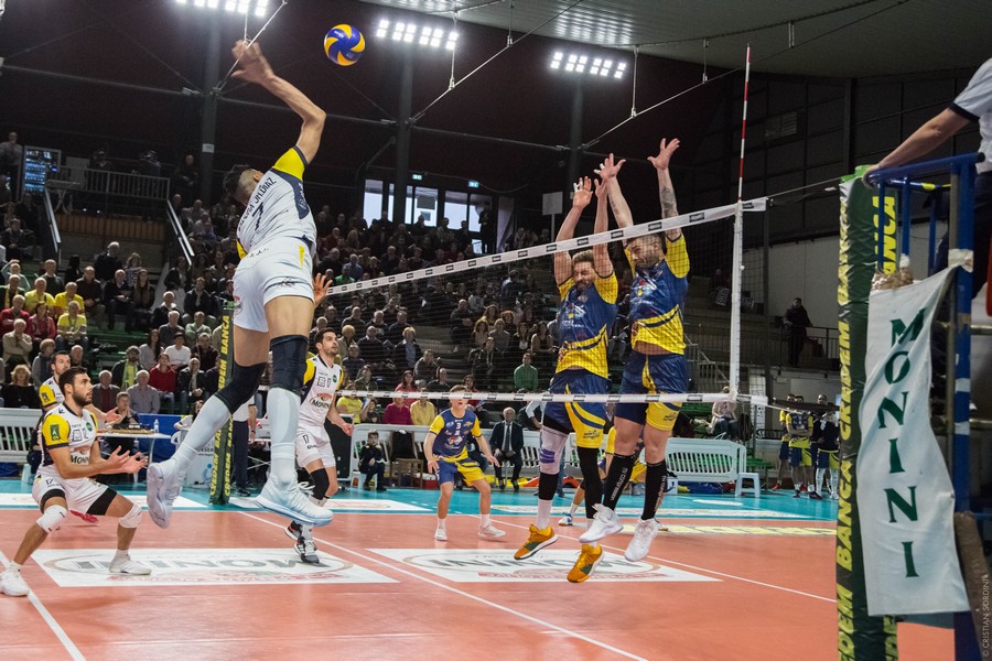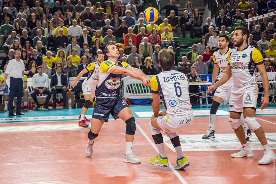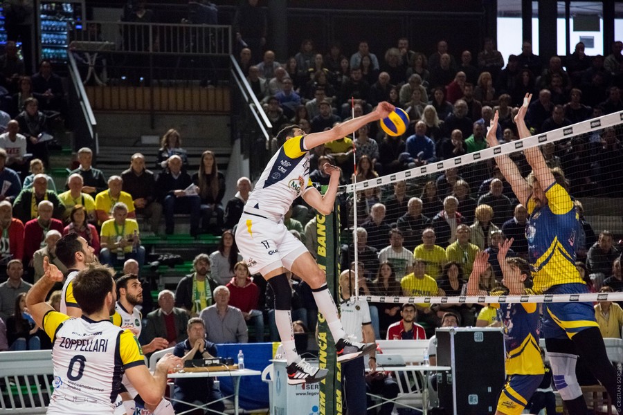 La cronaca – I due tecnici non cambiano nulla nei sestetti di partenza, le squadre sembrano studiarsi un po’ all’inizio anche se sono alla terza sfida nel giro di una settimana. Diversi errori in battuta portano le contendenti a braccetto a quota 10, il gioco è molto frammentato, ma ci può stare data la posta in palio. Castellano chiama un po’ insolitamente time out sul 14 pari, ma l’equilibrio continua a regnare sovrano. Almeno fino a quando Padura Diaz non si mette in proprio con due ace a 111 e 115 km orari, che scrivono il 20-16. Zamagni a muro ferma Fiore e fa 23-18, ma l’urlo di gioia gli si strozza in gola perché Castellana ha un grande ritorno con il giovane Primavera in battuta. Scaccia i fantasmi un attacco vincente di Mariano (25-22).