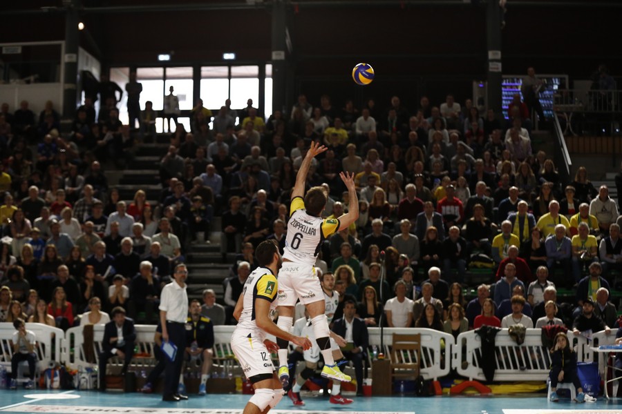 Con l’inerzia dalla propria parte, Spoleto prova a fare gara di testa anche nel secondo set (8-4). Aguenier è devastante al servizio con due ace, 10-4 e time out per Castellano che manda dentro Campana e Mazzon per Longo e Bertoli. Massimo vantaggio Spoleto con il pallonetto da seconda linea di Mariano (13-6), lo spettacolo è totale quando Zoppellari smarca senza muro Padura Diaz che inchioda il 18-9. Gli ospiti hanno un sussulto con i tre ace consecutivi di Cazzaniga, tutto il Palarota tira un sospiro di sollievo quando Mariano mette palla a terra e fa uscire i suoi da una rotazione terribile. In un finale di set dove la Materdomini ritrova un po’ di fiducia la Monini è brava a non disunirsi. E’ Ottaviani con una ricezione eccellente e un attacco chirurgico a scrivere 2-0 sul tabellino (25-19).