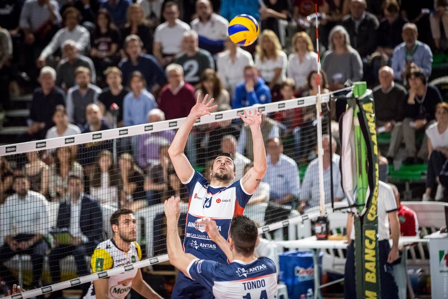 Spoleto inizia forte il secondo set con i suoi centrali (3-0), stavolta però Piacenza non si stacca e allora il match diventa bellissimo. Yudin trova l’ace del meno uno (12-11), Klobucar il muro della parità a quota 14. Tutto da rifare per gli oleari che continuano ad essere sostenuti a gran voce dal pubblico. Sul 17 pari Tardioli prova il doppio cambio con gli spoletini Segoni e Costanzi per Padura Diaz e Zoppellari, e proprio dal servizio di Costanzi la Monini si riprende il minibreak di vantaggio. Fa meglio di lui Sabbi che tira tre battute micidiali e spacca letteralmente il set, poi lo conclude da par suo con un doppio attacco da grande campione.