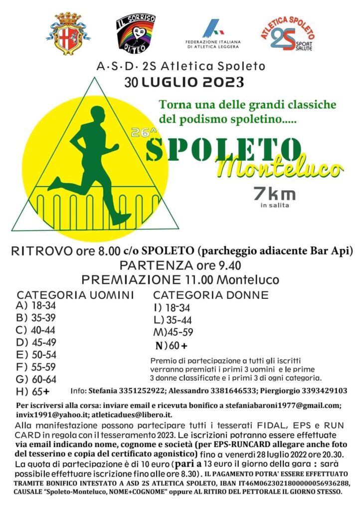 (DMN) Spoleto – É tutto pronto per l’edizione 2023 della Spoleto-Monteluco, una delle grandi classiche del posismo umbro, organizzata dalla 2S Atletica Spoleto. Una corsa di 7 km, tutti in salita, dalla basilica di San Pietro extra moenia alla vetta del Monte del Bosco Sacro.