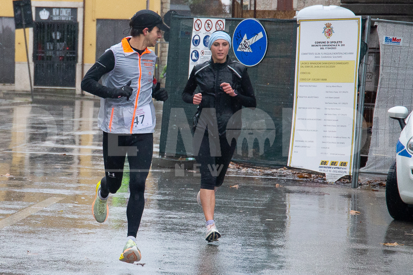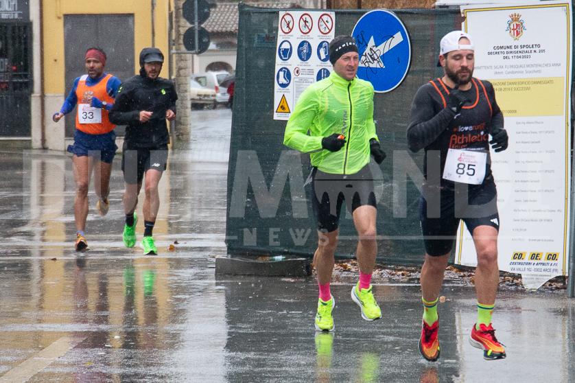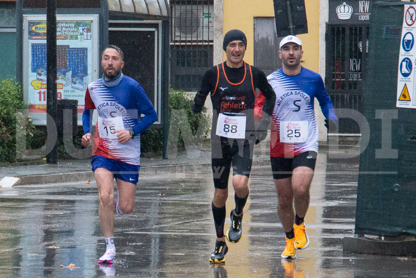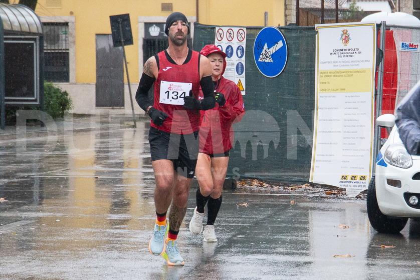 (DMN) Spoleto – una fredda pioggia battente non ha fermato, questa mattina, i 110 (89 uomini e 21 donne, suddivisi in 30 squadre) runner della 46ma edizione della classica del podismo umbro Morgnano-Spoleto-Morgnano, organizzata magistralmente dall’Atletica 2S Spoleto. 14 chilometri disegnati dalla centralissima Piazza del Mercato fino a Morgnano che hanno visto la vittoria, tra gli uomini, di Giulio Moriconi dell’Atletica Winner Foligno con il tempo di 00.47.18. In campo femminile a trionfare è stata Federica Poesini dell’Atletica Castello con 00.59.54.