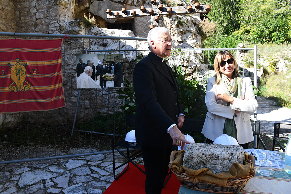 Mons. Boccardo si è detto soddisfatto di questa tappa ed ha parlato di un «lavoro di diversi anni e di diverse intelligenze. Non è stata un’operazione semplice, ci sono voluti studi, calcoli e previsioni per far sì che tutto il complesso possa ritrovare la sua bellezza originaria. Ringrazio il commissario Legnini che doveva essere con noi, ma il Covid non glielo ha consentito: la sua determinazione e il suo voler portare avanti queste operazioni ci hanno permesso di essere qui oggi. S. Eutizio è un luogo di storia e di arte, ma soprattutto è un luogo di fede. È il simbolo della Valle Castoriana e rimetterlo in piedi pietra su pietra vuole dire ridare un patrimonio prezioso alla vita di questa popolazione. Auspichiamo che presto tutto il complesso abbaziale torni ad essere faro di ispirazione per la nostra Diocesi e per i turisti che vengono ad ammirare la bellezza del territorio. Quest’operazione – ha proseguito il Presule – ci fa vedere che quando si lavora insieme si realizzano cose importanti».