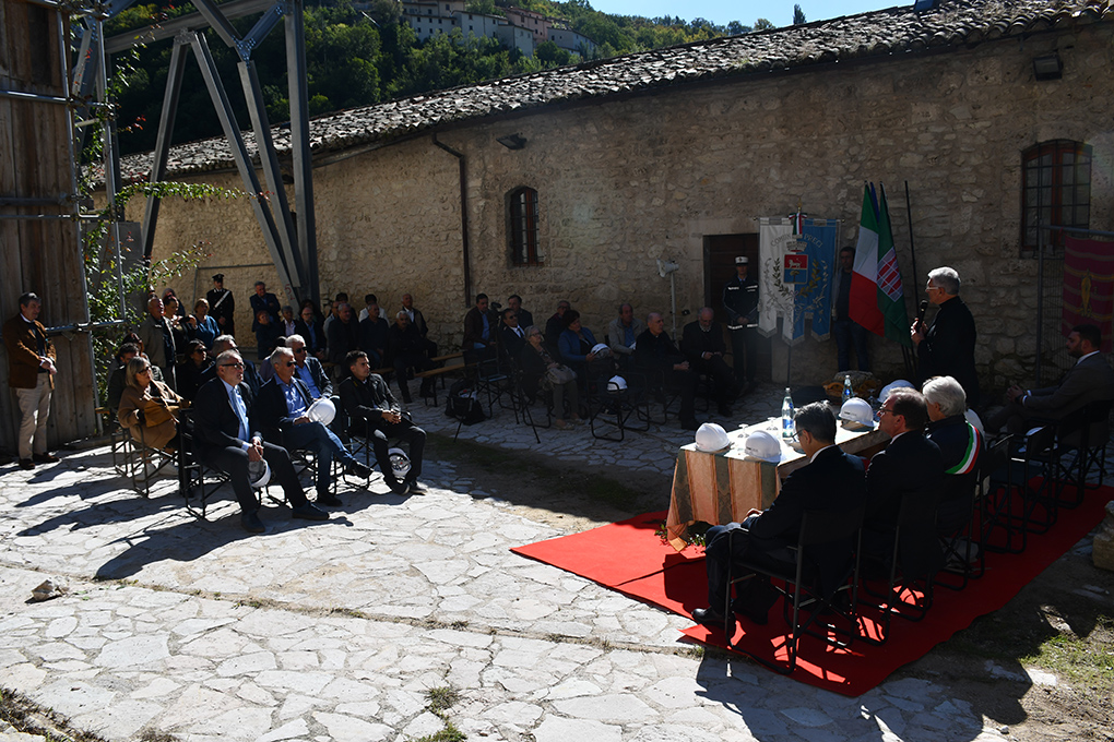 L’ing. Fulvio Soccodato ha portato i saluti del commissario Legnini ed ha sottolineato come questa operazione non è stata semplice, ma – ha detto – «abbiamo lavorato fianco a fianco, pubblico e privato, per trovare soluzioni tecniche e facendo sintesi tra la tutela del bene e una ricostruzione veloce. E ci siamo riusciti. Oggi iniziamo quella parte visibile anche ai cittadini».