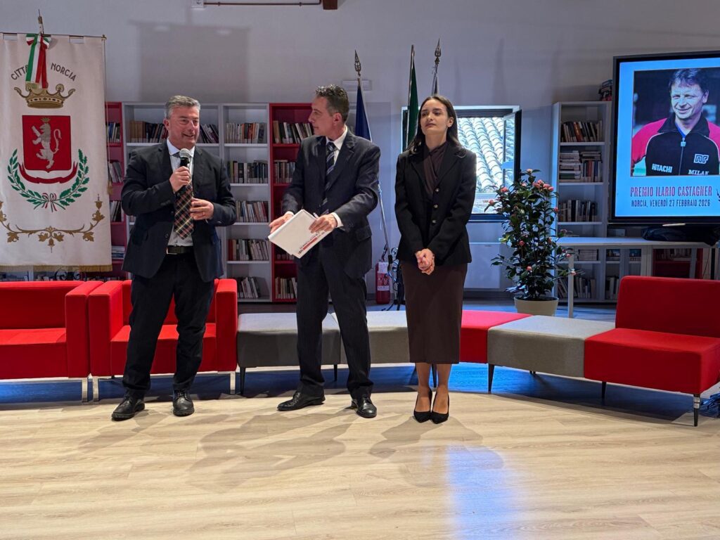 Hanno ricordato l’uomo, hanno ricordato l’allenatore. Soprattutto, hanno ricordato chi era davvero Ilario Castagner: un personaggio come ormai non ne esistono più, emblema di un calcio d’altri tempi che ha saputo emozionare e raccontare uno spaccato di un’intera regione (e non solo). L’edizione 2026 del premio che prende il nome dell’indimenticato tecnico (tra le altre) di Perugia, Milan e Inter ha colto nel segno, in una Sala Digipass gremita in quel di Norcia, con un centinaio di studenti dell’Istituto “De Gaspari-Battaglia” che hanno potuto conoscere e apprezzare le doti umane e non solo di allenatore di un uomo che ha saputo davvero incidere nel tessuto regionale umbro, e non solo. “Di uomini come Castagner questo calcio avrebbe tanto bisogno”, ha esordito il sindaco Giuliano Boccanera, dando il benvenuto agli ospiti e ai premiati dell’edizione 2026, a cominciare da Bruno Giordano, che ha ritirato il premio nazionale. “Purtroppo ho avuto la possibilità di lavorare poco con Ilario, perché ad Ascoli venne esonerato dopo poche gare, ma posso testimoniare di aver conosciuto una persona con valori straordinari”, ha confessato l’ex attaccante della Lazio, il club dove Ilario ebbe modo di conoscerlo nei primi anni ’80. “Per me è un onore ricevere un premio così prestigioso, perché il ricordo di Castagner è ancora vivo nella memoria di tutti noi che siamo stati allenati da lui. Ed è bello riceverlo qui a Norcia, città alla quale era tanto legato e che ancora una volta ci fa sentire veramente a casa”.