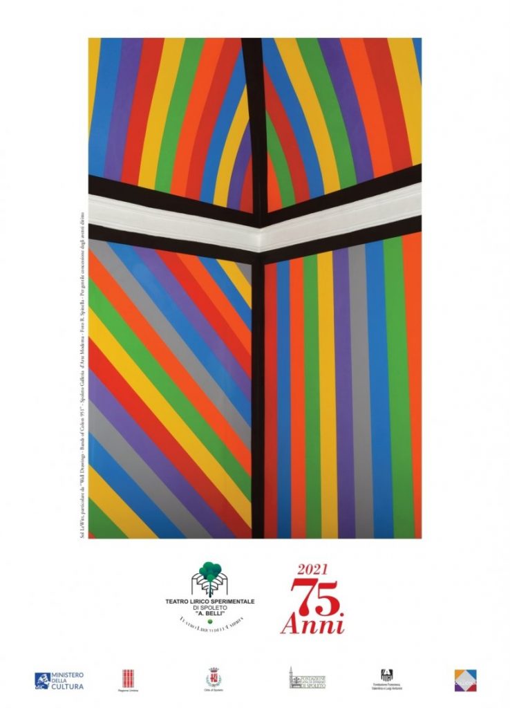 Il poster ufficiale dei 75 anni di attività che rappresenta un particolare dell’opera “Wall Drawings – Bands of Colors 951” di Sol LeWitt, situata alla Galleria d’Arte Moderna di Spoleto. Foto di Riccardo Spinella, per gentile concessione degli aventi diritto. Si ringraziano il Comune di Spoleto e la Galleria d’Arte Moderna di Spoleto, diretta da Marco Tonelli.