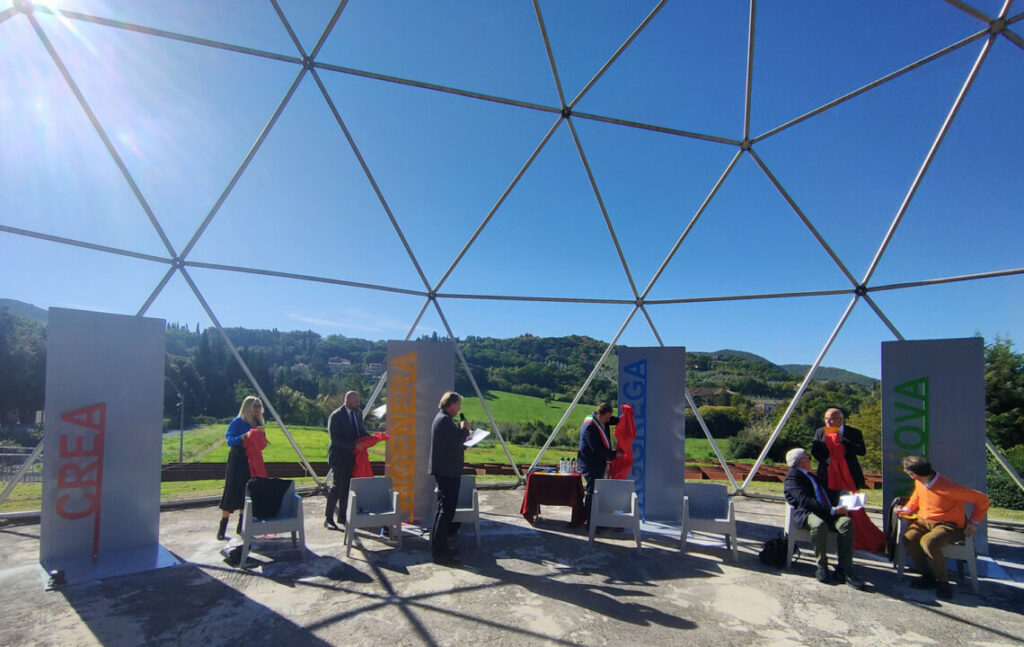 La presentazione del progetto del Comune di Spoleto, coordinata da Giovanni Parapini, Responsabile della Sede Regionale per l’Umbria, si è svolta questa mattina sotto la cupola geodetica di Richard Buckminster Fuller, Spoletosphere, alla presenza del sindaco Andrea Sisti, dell’assessore alla valorizzazione delle culture, della qualità e della bellezza della Città e del territorio Danilo Chiodetti, del professore Giuseppe Roma, presidente dell’Urban Research Institute, del professore Fausto Elisei, Pro-Rettore Vicario dell’Università degli Studi di Perugia, di Marco Tonelli, direttore artistico di Palazzo Collicola e della dirigente alla valorizzazione delle culture, della qualità e della bellezza della Città e del territorio, Roberta Farinelli.