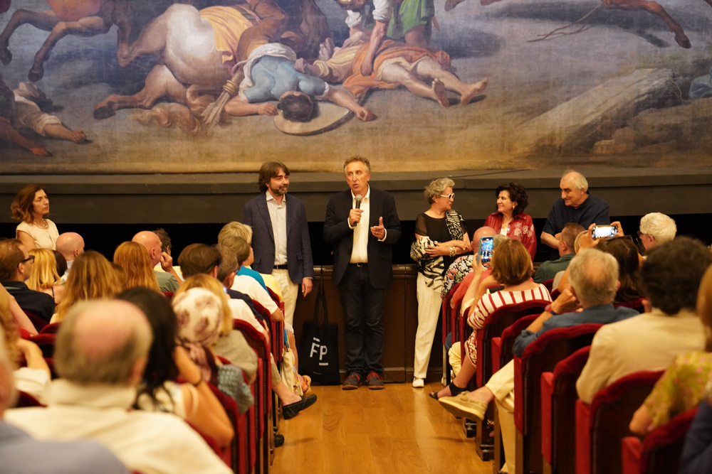 “Il restauro del Sipario Storico del Teatro Nuovo di Spoleto, dipinto nel 1861 dal bergamasco Francesco Coghetti, è un evento di straordinaria importanza non solo per la qualità e le dimensioni del manufatto, ma anche per la sua ricollocazione in teatro che gli consente di riacquistare la sua duplice funzione, pratica e simbolica – ha commentato Stefania Petrillo, Docente di Storia Contemporanea dell’Università di Perugia e autrice della monografia Sipari d’Italia – Il sipario è la “quarta parete” della sala, il diaframma che separa lo spazio della realtà da quello della finzione; negli anni cruciali del Risorgimento, quando è “istoriato”, esso diventa spesso un vero manifesto politico. Nella Fuga di Annibale sotto le mura di Spoleto, l’episodio che ricorda la vittoriosa resistenza di Spoleto all’assedio di Annibale nel 217 a.C., va così letta, in filigrana, la speranza di un’Italia finalmente libera e unita. Orgoglio municipale e partecipazione al progetto di unità nazionale convergono dunque nell’iconografia della spettacolare “macchina”, ricca di pathos e dinamismo, che racconta in modo coinvolgente l’epos civico assumendo anche un alto valore etico ed educativo”.