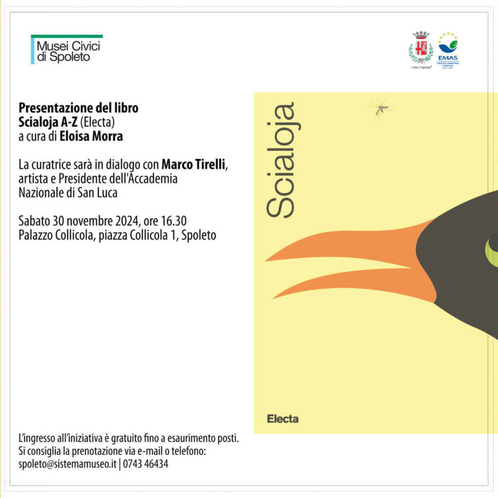 Ultimo appuntamento di “Accade d’autunno a Spoleto“. Sabato 30 novembre, alle ore 16.30 alla Biblioteca Carandente di Palazzo Collicola, è in programma la presentazione del libro Scialoja A-Z, edito dalla casa editrice Electa e curato da Eloisa Morra.