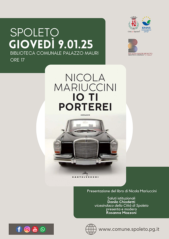 Giovedì 9 gennaio alle ore 17.00 nelle sale della biblioteca comunale “G. Carducci” di Spoleto a Palazzo Mauri si terrà la presentazione del libro “Io ti porterei” di Nicola Mariuccini, edito da Castelvecchi.