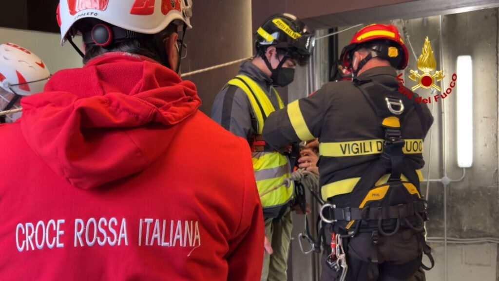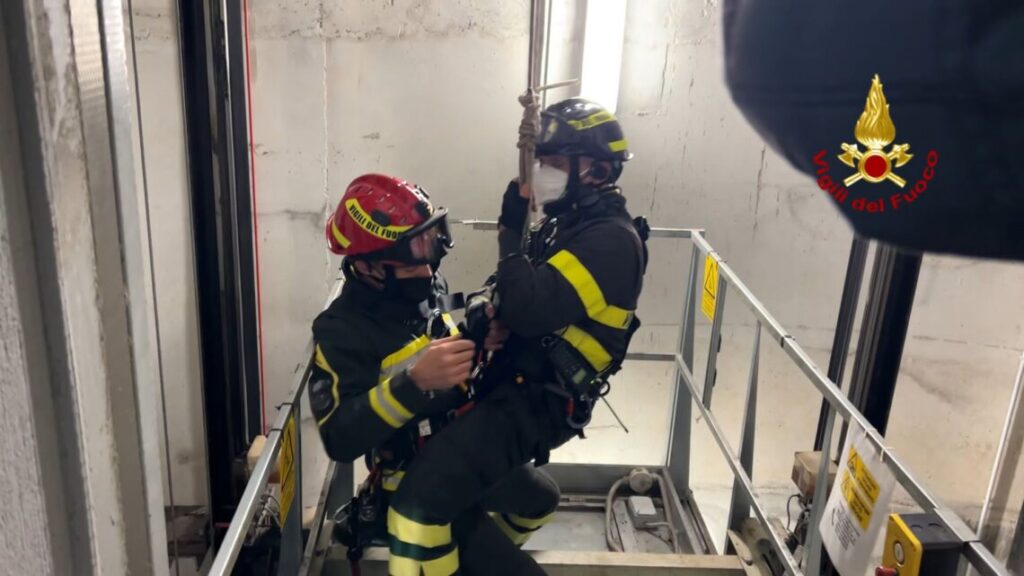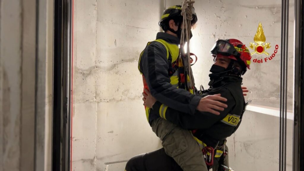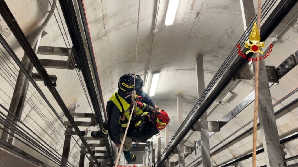 Il secondo scenario ha previsto il soccorso a due persone, di cui una sorda, rimaste bloccate all’interno di uno degli ascensori che collega il tunnel del percorso meccanizzato a Piazza Pianciani.