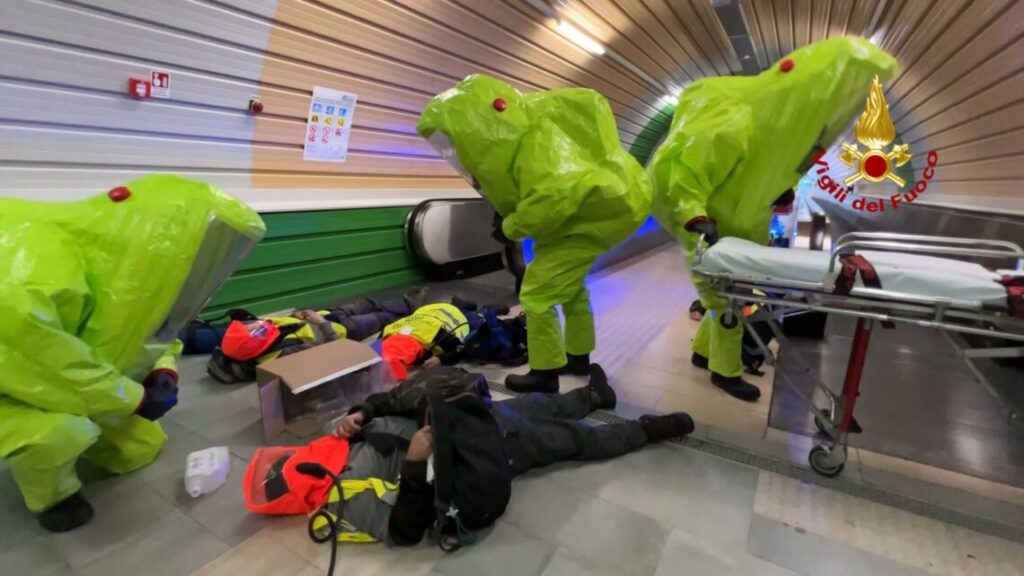 La sostanza, in forma liquida, ha generando fumi e vapori pericolosi provocando il malessere di alcuni figuranti e suscitando il panico tra i restanti figuranti all’interno del tunnel.