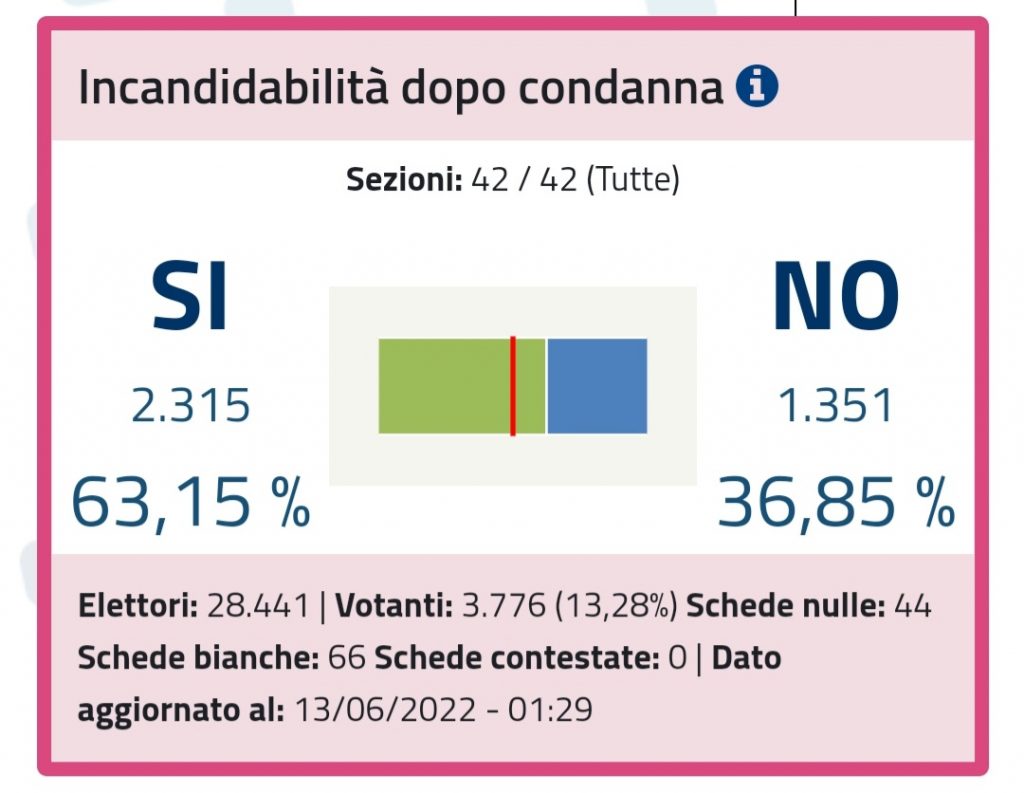 Incandidabilità dopo condanna 13,28%
