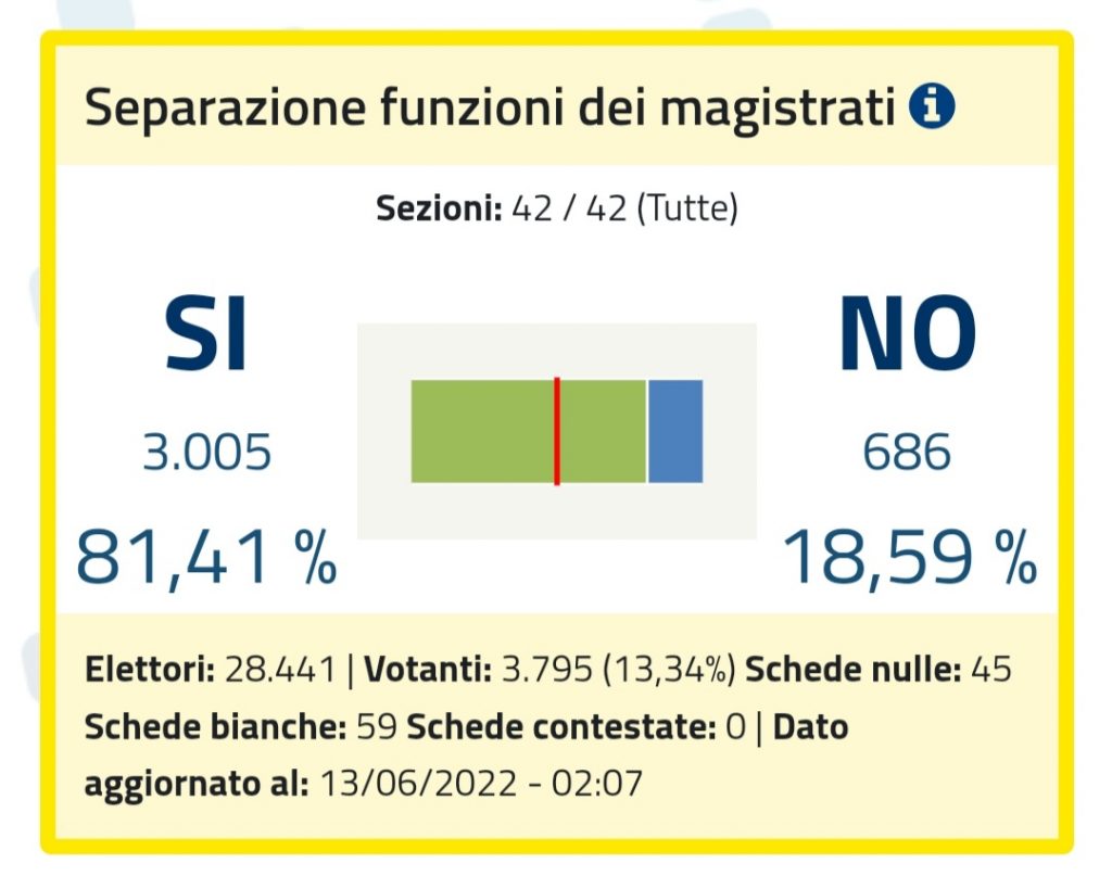 Separazione funzioni dei magistrati 13,34%