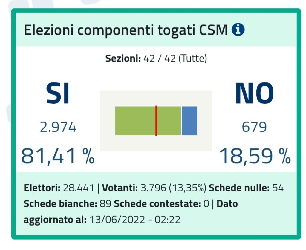 Elezioni componenti togati CSM 13,35 %