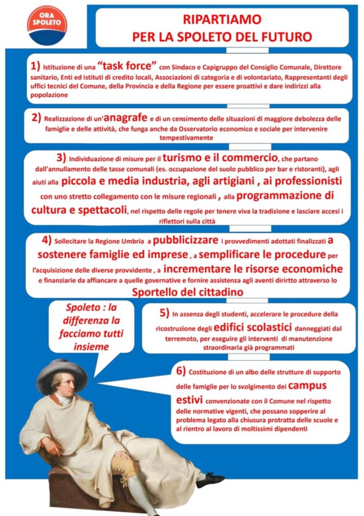 Ecco le proposte di Ora Spoleto in questo manifesto programmatico, che configura azioni e decisioni che Ora Spoleto ritiene necessarie per il rilancio della città.