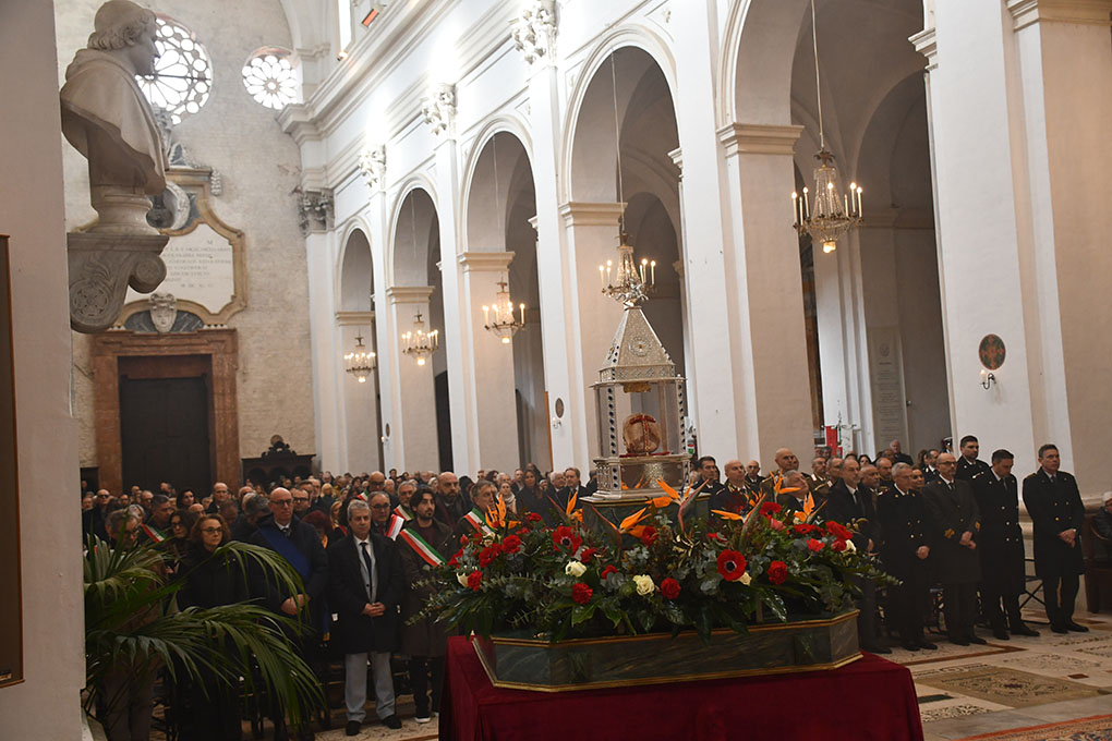 Che cosa diremo a Dio, noi spoletini, per mezzo di San Ponziano? «Vogliamo raccomandare a Dio – ha detto l’Arcivescovo – le nostre famiglie, perché siano scuola di vera umanità e luogo di autentica educazione alla vita e all’amore. Gli vogliamo raccomandare i nostri bambini, perché siano protetti dalla malizia degli adulti e non siano sacrificati daIl’egoismo dei genitori. Gli vogliamo raccomandare i nostri adolescenti, ai quali in Città vengono venduti impunemente alcool e fumo, e i nostri giovani, perché non siano lasciati soli nella ricerca di un futuro di concordia, di stabilità e di giustizia. Gli vogliamo raccomandare i nostri malati, perché siano curati con amore e professionalità. Gli vogliamo raccomandare i nostri politici, perché operino sempre per il conseguimento del bene comune e Io antepongano agli interessi personali o di partito. Gli vogliamo raccomandare questa comunità diocesana, perché sia sempre testimone di fede, speranza, carità; sia sempre una casa accogliente dove ognuno si senta amato, perdonato, incoraggiato. Gli vogliamo affidare la nostra coscienza, perché sia sempre illuminata dalla Parola di Dio e rimanga un sacrario di decisioni giuste».