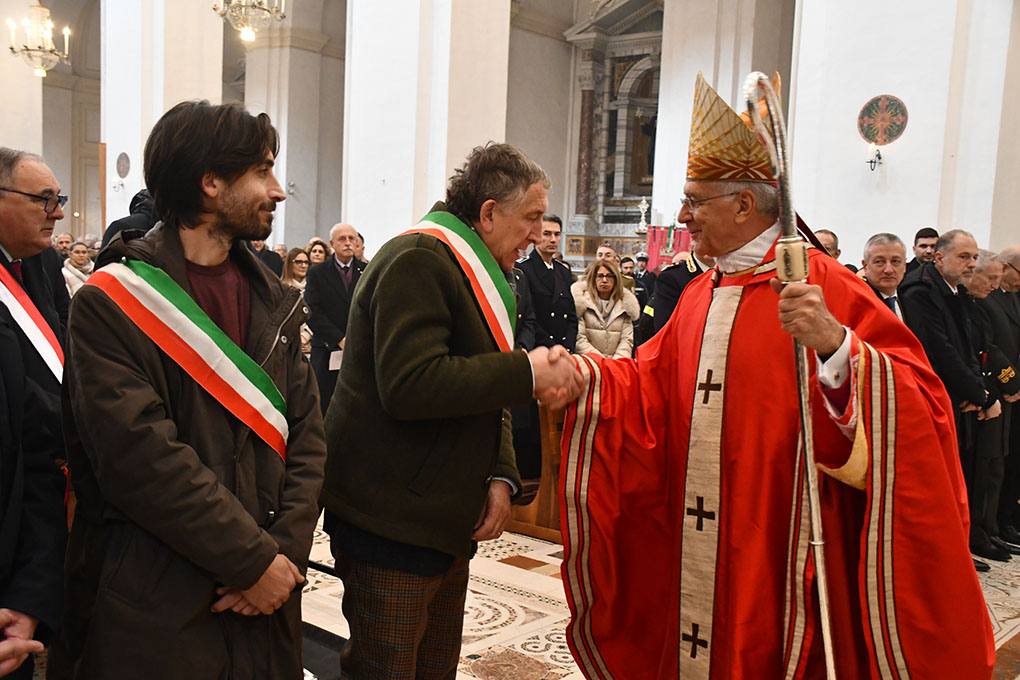 Mercoledì 14 gennaio 2026 le celebrazioni in onore di S. Ponziano, patrono della Città di Spoleto e dell’intera Archidiocesi, si sono avviate al Ponte Sanguinario, luogo del martirio del Santo nell’anno 175. Un momento di preghiera semplice e raccolto, scandito dalla lettura della passione di S. Ponziano e dal silenzio. Erano presenti l’arcivescovo mons. Renato Boccardo, i sacerdoti dello spoletino, il vice sindaco della Città Danilo Chiodetti, gli assessori Federico Cesaretti e Giovanni Angelini Paroli e alcuni fedeli. All’ingresso del Ponte l’associazione “G. Parenzi” ha posizionato alcune immagini di S. Ponziano. Poi, alle 11.30, c’è stato il solenne pontificale nel Duomo di Spoleto presieduto dall’Arcivescovo, concelebrato da tanti sacerdoti della Diocesi, alla presenza di varie autorità civili e militari, ad iniziare dai sindaci di Spoleto e Norcia, Andrea Sisti e Giuliano Boccanera. La liturgia è stata animata dalla corale diocesana diretta da Mauro Presazzi, con all’organo Angelo Silvio Rosati.