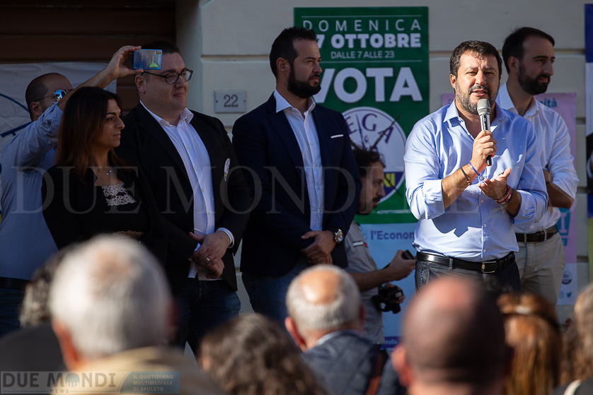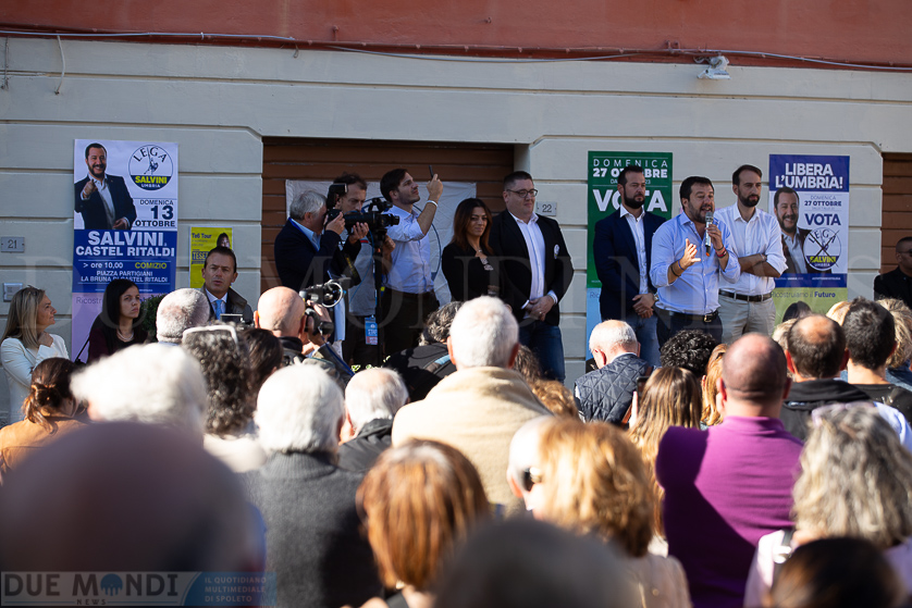 L’intervento di Salvini è stato anticipato dalle parole del segretario regionale del partito, l’On. Virginio Caparvi, e da quelle del sindaco di Castel Ritaldi, Elisa Sabbatini. Entrambi hanno rivolto l’attenzione sull’importanza dei piccoli comuni nella vita, non solo economica, della Regione, sottolineando il concetto che “‘l’Umbria dei piccoli comuni deve tornare ad essere l’Umbria di Serie A”.