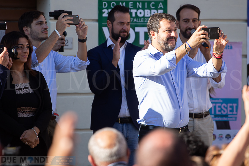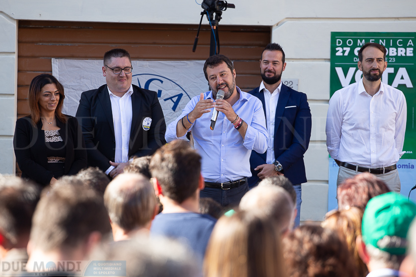 Nel suo intervento, Salvini, ha detto di non promettere miracoli ma di impegnarsi seriamente per la rinascita dell’Umbria.