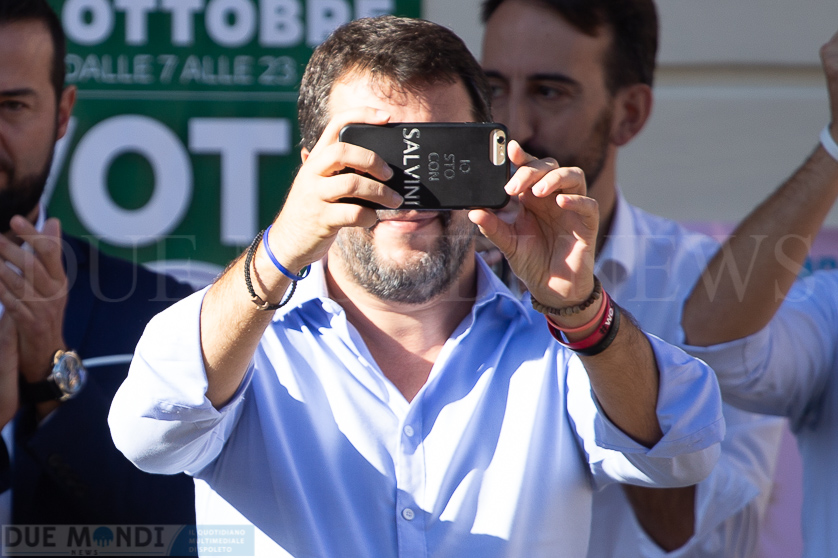 (DMN) Castel Ritaldi – continua senza sosta il tour di Matteo Salvini nei comuni umbri in vista del voto regionale del 27 ottobre. Questa mattina, il segretario federale della Lega é stato a Castel Ritaldi. Un comizio, in piazza Partigiani nella frazione di Bruna, di oltre 40 minuti, in cui il senatore ha toccato vari temi dalla politica nazionale a quella regionale.
