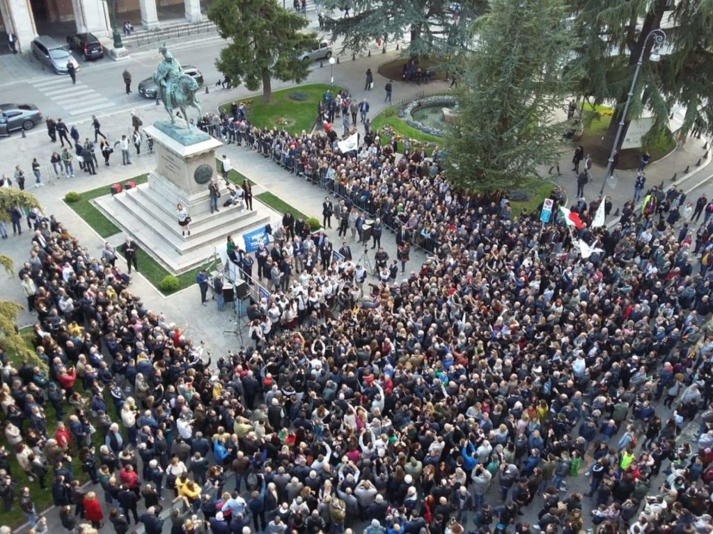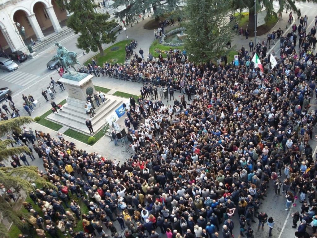Un bel pomeriggio di sole, la gente sorridente, all’ombra di Vittorio Emanuele in Piazza Italia a Perugia, poi l’arrivo di Matteo Salvini fra baci, abbracci, e tanti applausi. Per ben tre volte Salvini ha avvicinato il candidato sindaco di Foligno Zuccarini per incoraggiarlo nella sfida finale, ora che “l’Umbria è libera”, chiaro riferimento alle dimissioni della Marini e ai recenti fatti di cronaca con gli arresti degli esponenti del Pd.