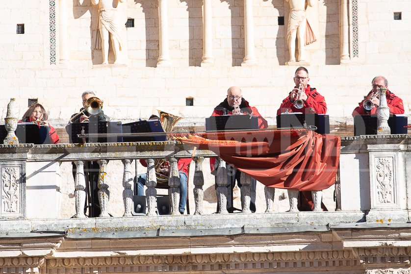 Al termine della Messa, mentre la gente usciva dalla Cattedrale, un gruppo di ottoni della Banda Musicale di Spoleto, dalla loggia centrale, ha omaggiato il Santo Patrono.