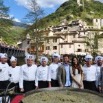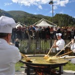 Grande partecipazione alla dodicesima edizione de ‘Il Diamante Nero’, che ha attirato a Scheggino ieri e oggi migliaia di curiosi e famiglie. Anche quest’anno si è rinnovata l’attesa tradizione della frittata al tartufo da record, realizzata dallo chef Fabio Ferretti e dai volontari schegginesi con circa 2.500 uova e 65 kg di tartufi. Tanti gli ospiti presenti oggi a Scheggino: a tenere a battesimo la frittatona sono stati Elisabetta Gregoraci e Paolo Conticini. Ma a dare il loro contributo per la realizzazione della frittata da guinness sono stati anche la presidente della Regione Umbria Catiuscia Marini e la vicepresidente della Camera dei deputati Marina Sereni. Nel piccolo borgo lungo le sponde del Nera oggi sono arrivati anche il sottosegretario agli Interni Gianpiero Bocci, la presidente del Consiglio regionale Donatella Porzi, l’Assessore regionale Luca Barberini, vari consiglieri regionali, i rappresentanti delle amministrazioni comunali del territorio e le autorità militari.