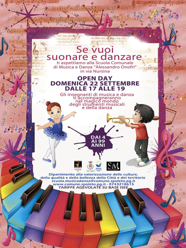 Ultimi giorni per iscriversi alla Scuola Comunale di Musica e Danza “Alessandro Onofri”. La scadenza è fissata per domenica 22 settembre, giorno in cui sarà organizzato un Open Day per avvicinarsi alle discipline offerte per l’anno scolastico 2024/2025.