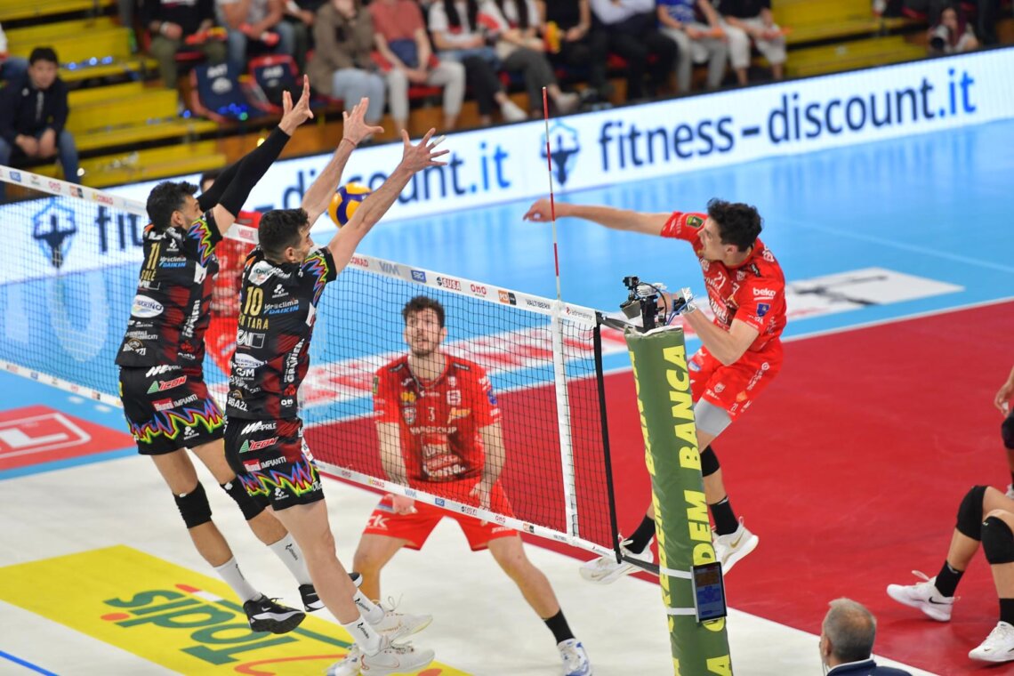 E’ la Lube a vincere Gara 5 e conquistare l’accesso alla finale scudetto con Trento. Una vittoria che arriva in 4 set: dopo un primo parziale tiratissimo e chiuso ai vantaggi dai padroni di casa 29-27, i marchigiani ripartono con intensità, forzando al servizio e spingendo in attacco e si prendono con determinazione gli altri parziali (19-27, 17-25, 22-25). Se l’efficacia in attacco di squadra al termine del match è equilibrata (50% per la Sir e 49% per la Lube) così come il numero di muri (7 per i Block Devils e 6 per i cucinieri), la differenza importante è dai nove metri con i bianconeri che chiudono con 6 ace e 21 errori. 17 invece i servizi vincenti dei ragazzi di Medei. L’mvp se lo prende Mattia Bottolo, che chiude con 16 punti, 7 ace, il 44% in attacco e un muro.