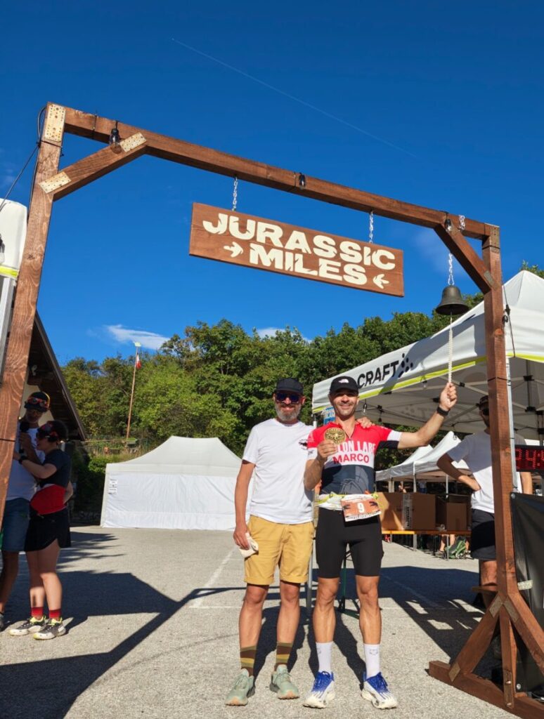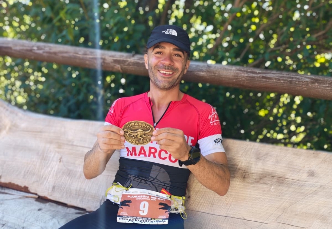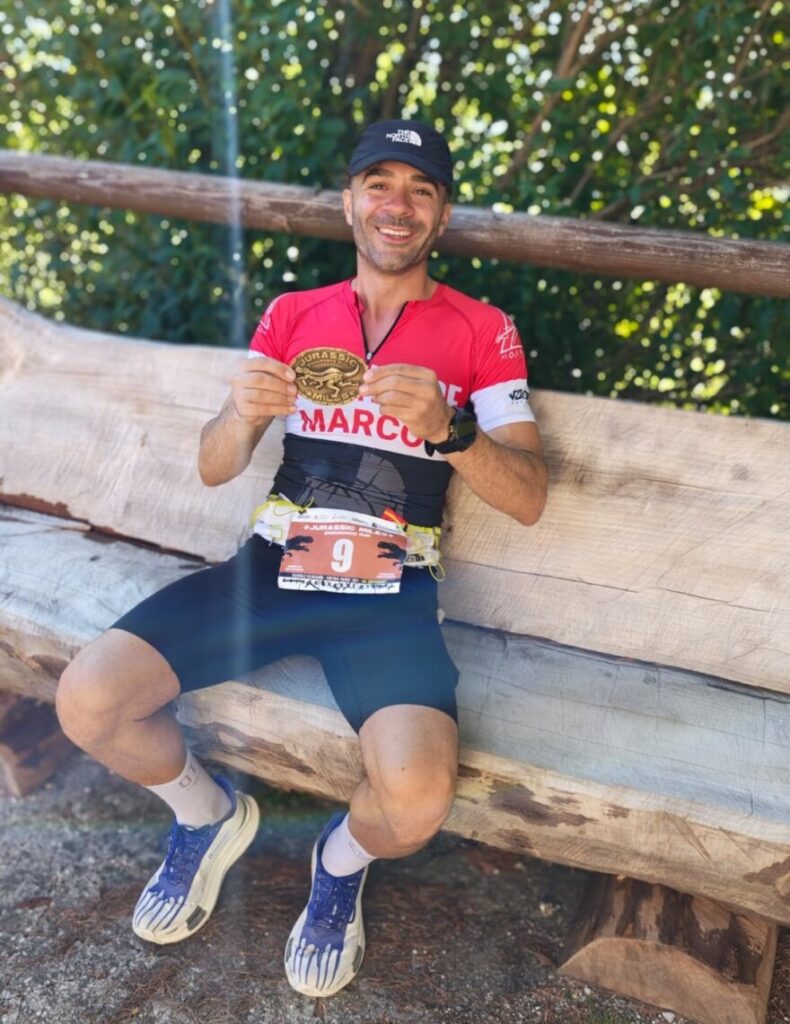 “È stata la mia prima 100 miglia e sono arrivato 8° assoluto – spiega Marco a Due Mondi News – la Jurassik Miles Endurance Run è una gara di corsa di resistenza estrema in montagna, unica nel suo genere: 7 giri da 23 km per un totale di 160 km e 4.200 metri di dislivello positivo, da affrontare su sentieri duri e tecnici, anche di notte e spesso in completa autonomia. Una sfida in cui la gestione mentale e fisica conta quanto la forza nelle gambe. Io ho corso senza mai chiudere occhio, nonostante una brutta distorsione alla caviglia al 90° km, non ho mollato: ho stretto i denti fino alla fine, chiudendo l’impresa all’8° posto assoluto in 24 ore e 32 minuti”.