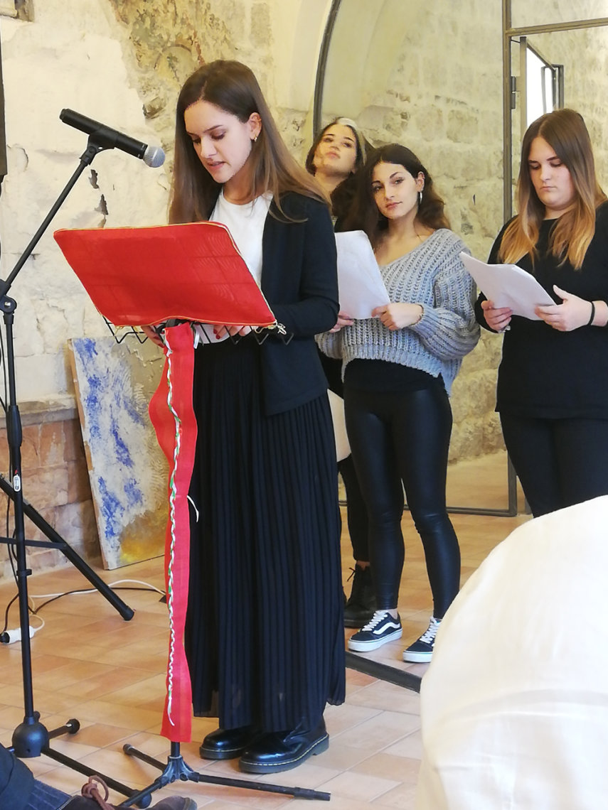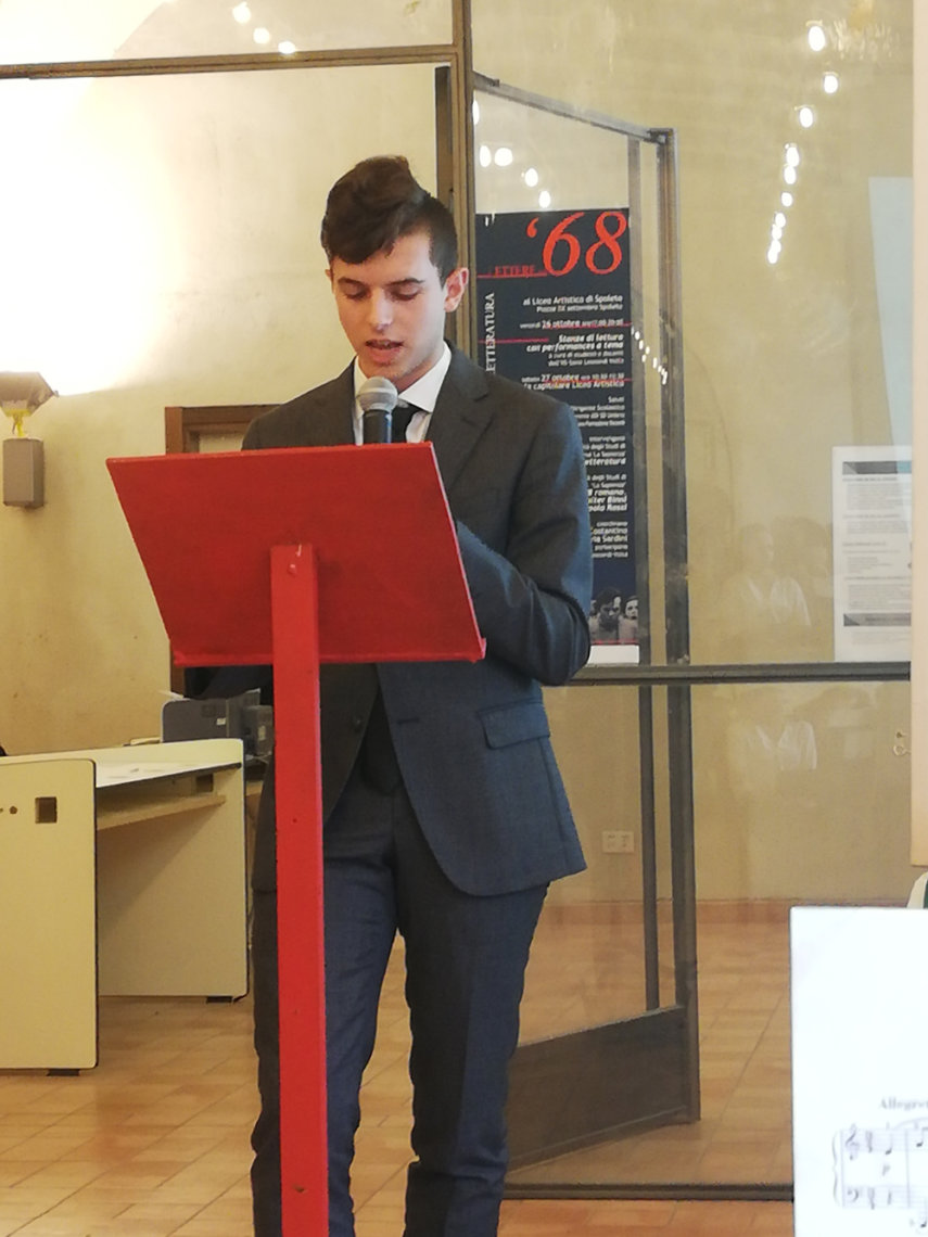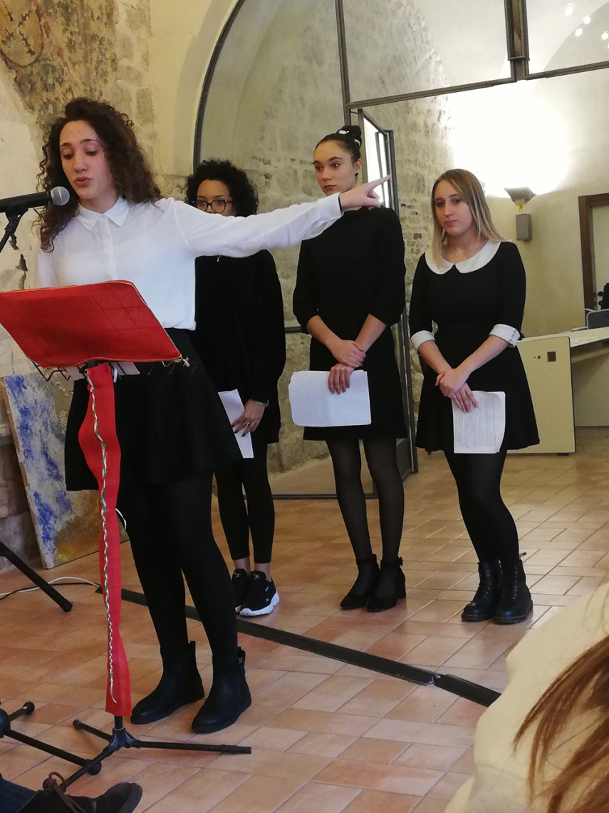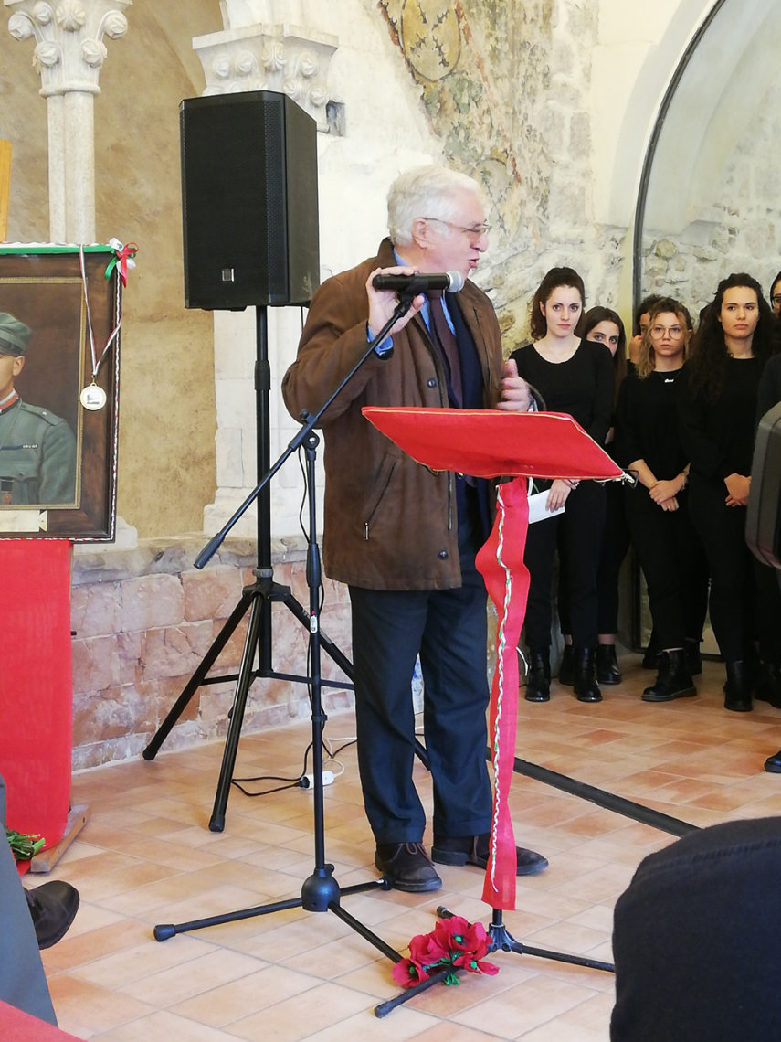 All’iniziativa, che si è svolta nella sala Capitolare del Liceo Artistico, hanno partecipato, insieme al Sindaco Umberto de Augustinis, il 2° Battaglione Cengio, l’Associazione Nazionale Alpini, l’Associazione Nazionale Carabinieri, la Scuola Primaria del 1° Circolo di Spoleto, oltre ai molti studenti dei Licei che hanno letto brani, poesie e lettere delle donne e degli uomini che quella guerra in vari modi affrontarono.