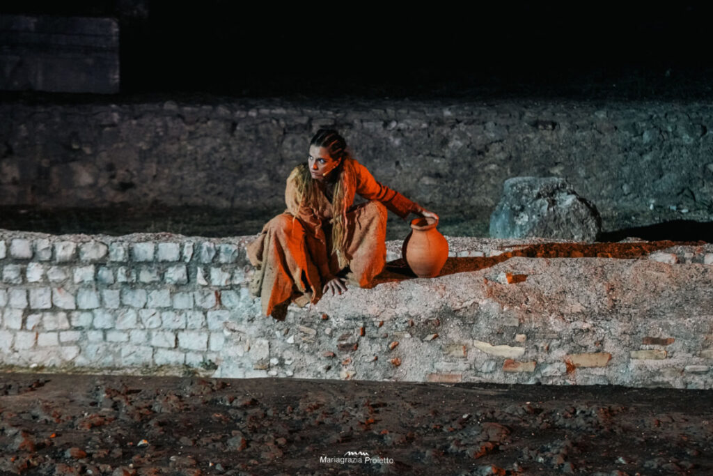 Ultima tappa è stata la messa in scena dello spettacolo a Bevagna, sotto un cielo stellato, presso il parco archeologico dell’Imbersato, recentemente riqualificato, contenente resti di epoca romana di un antico anfiteatro, cornice unica e particolarmente suggestiva.