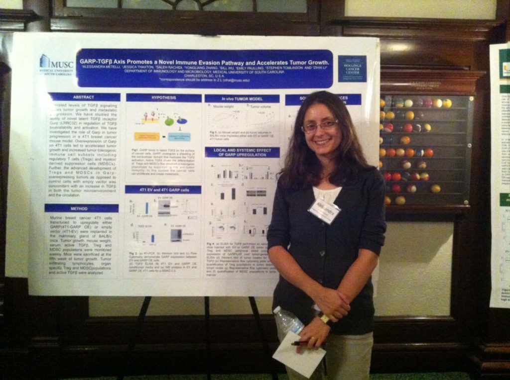 Ciao Alessio, innanzitutto grazie per avermi contattata, sono felice di poter contribuire alla tua rubrica Spoletini all’estero. L’idea di trasferirmi all’estero nasce durante la laurea specialistica in biologia che ho conseguito presso l’universita’ di Perugia. Uno dei miei professori possedeva una cattedra anche presso la Medical University of South Carolina (MUSC), un’universita’ che ha sede a Charleston, negli Stati Uniti. Nel mondo scientifico l’inglese e’ l’unica lingua utilizzata sia nella letteratura scritta che nel linguaggio parlato. Ho sentito percio’ la necessita’ di svilppare una maggiore padronanaza dell’inglese e per questo motivo ho chiesto a questo mio professore di poter fare un’esperienza di lavoro nel suo gruppo di ricerca alla MUSC. Questa prima esprienza lavorativa ha segnato un punto di svolta nella mia crescita sia professionale che personale: ho avuto la fortuna e l’onore di lavorare accanto a scienziati brillanti e di conoscere l’affascinante mondo della ricerca. Per questo motivo ho deciso di continuare gli studi presso la MUSC conseguendo un dottorato di ricerca in scienze immunologiche.