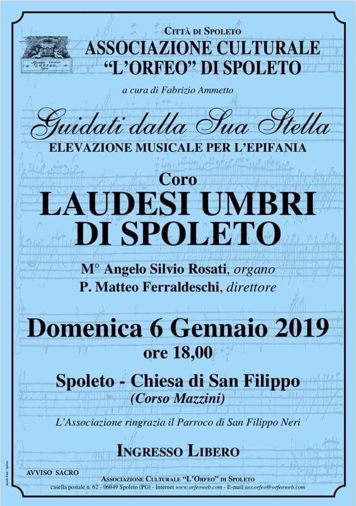 (DMN) Spoleto – domenica 6 gennaio si rinnova il tradizionale appuntamento con l’elevazione musicale per l’Epifania dei Laudesi umbri.