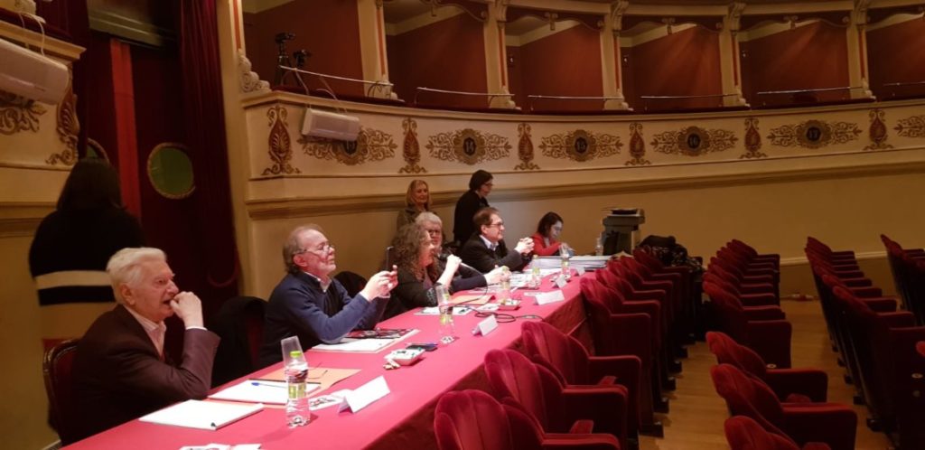 A parlare è il Sindaco Umberto de Augustinis, presente questa mattina al Teatro Nuovo Gian Carlo Menotti per la prima giornata della 73ᵃ edizione del Concorso “Comunità Europea” 2019 per giovani cantanti lirici.