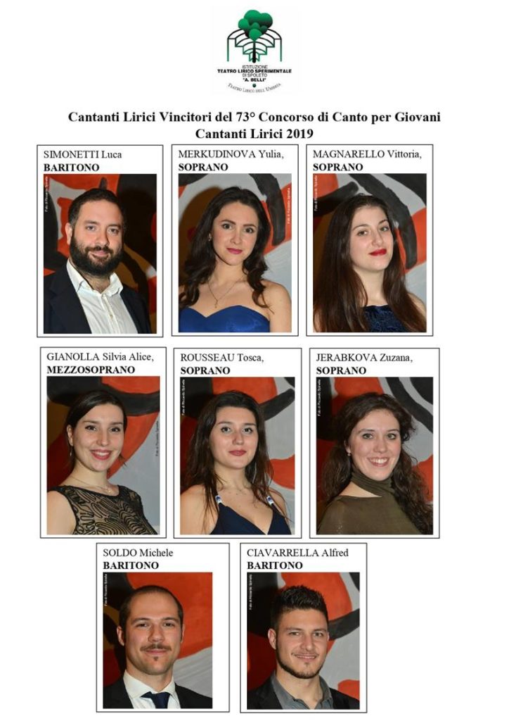 Dopo essere stati decretati i vincitori della 73ma Edizione del Concorso “Comunità Europea” per Giovani Cantanti Lirici 2019 (Luca Simonetti, Baritono, 32 anni, Premio IMAIE di €15.00,00 – Yulia Merkudinova, soprano, 29 anni – Vittoria Magnarello, soprano, 24 anni –Silvia Alice Gianolla, mezzosoprano, 27 anni –Tosca Rousseau, Soprano, 23 anni –Zuzana Jeřábková, soprano, 25 anni – Michele Soldo, Baritono, 25 anni – Alfred Ciavarrella, Baritono, 25 anni) il Teatro Lirico Sperimentale ha proseguito l’attività di audizioni per cantanti extraeuropei o per coloro che hanno da poco superato il limite di età per partecipare al Concorso.
