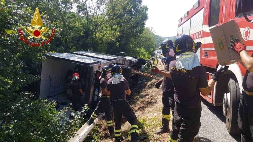 (DMN) Spoleto – questa mattina (14), un camion frigorifero si é ribaltato, a margine della sede stradale, sulla statale Flaminia all’altezza della frazione di Strettura. Il mezzo é stato recuperato dalla squadra del Distaccamento dei Vigili del Fuoco di Spoleto con l’ausilio dei colleghi della Centrale, con un autogru, dopo che la cella frigorifera é stata svuotata per rendere più agevoli le operazioni. Sul posto ha operato anche la Polizia Stradale ed il traffico ha subito lievi rallentamenti. Risultano illese le due persone coinvolte nel sinistro.