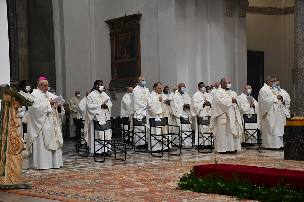 L’Arcivescovo ha concluso l’omelia (consultabile per intero nel sito www.spoletonorcia.it) consegnando a se stesso e ai preti due verbi su cui riflettere: “lasciare” e “desiderare”. «Come affronteremo la paura di lasciare? Perché certamente dovremo scegliere di lasciare alcuni aspetti della nostra abituale vita ecclesiale. Saremo in grado di compiere qualche scelta coraggiosa? Come accompagneremo le comunità nell’abbandonare abitudini consolidate e non più corrispondenti al tempo che viviamo? Come le aiuteremo ad investire in percorsi inediti? Sarà importante come presbiteri e come Chiesa diocesana dare un nome alle paure, altrimenti esse domineranno le scelte (o le non-scelte)». E poi, “desiderare”: «Siamo preti ancora capaci di desiderare un domani per la nostra Chiesa? Sentiamo la gioia di metterci in gioco, di lasciarci inquietare, di non rassegnarci al quieto vivere? Desiderare è guardare la stella polare del nostro ministero, è sentite la nostalgia per quello cui abbiamo donato la vita. I preti anziani non dovrebbero contare solo gli anni che stanno davanti a loro, ma essere lieti che i sogni per i quali hanno faticato lungo il loro ministero siano consegnati con nuovo slancio alla generazione futura. I sacerdoti di mezza età dovrebbero sentire che il meriggio fecondo del loro ministero non è una rendita, ma un tesoro prezioso in vasi di creta (cf 2 Cor 4, 7), la manna che deve essere rinnovata ogni giorno (cf Es 16, 16-20), vivendo il dono del ministero non da soli ma nella sinfonia dei legami ecclesiali. I preti giovani intuiscono che la Chiesa di domani sarà la loro Chiesa. Forse saranno meno numerosi, ma se non coltivano fin da ora legami di fraternità e di prossimità tra loro, con i giovani, le famiglie e le comunità, non potranno tessere il loro futuro».
