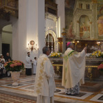 Il giorno di Pasqua, domenica 1° aprile 2018, l’arcivescovo di Spoleto-Norcia mons. Renato Boccardo ha presieduto la Messa con le persone ricoverate presso l’Hospice “La torre sul colle” di Spoleto (9.00) e il solenne pontificale in Duomo (11.30). A questa seconda celebrazione erano presenti tantissimi fedeli, spoletini e molti turisti: la grande Cattedrale di Santa Maria Assunta era piena in ogni settore. Presente il vice sindaco facente funzione di Spoleto Maria Elena Bececco. La liturgia è stata animata dalla Cappella musicale del Duomo diretta dal maestro Francesco Corrias, con all’organo il maestro Paolo Sebastiani. Col Presule hanno concelebrato i sacerdoti delle parrocchie della Cattedrale e di S. Gregorio. Il servizio liturgico è stato curato dai seminartisti.