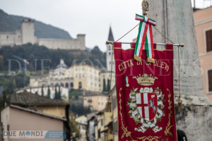 Il 4 Novembre di quest’anno viene a cadere nel centesimo anniversario della fine della Grande Guerra. Il sindaco Umberto de Augustinis, intervenuto stamani in piazza Garibaldi alle cerimonie per la celebrazione della Giornata delle Forze Armate e dell’Unità nazionale, dopo la lettura del messaggio del Capo dello Stato da parte del Comandante dello Stabilimento Militare di Baiano Colonnello Alessandro Primavilla, ha pronunciato un discorso in cui ha sottolineato come “oggi, cento anni dopo, ricordiamo e ricorderemo sempre la generosità di quei componenti delle forze armate” e ha ribadito anche come “Spoleto è affezionata fortemente alle Forze armate presenti da tempi lontani sul suo territorio, ne apprezza il quotidiano sforzo, sa quanto sia importante avere un presidio efficace in tutti i casi di sciagure naturali, avendone apprezzato l’impegno anche nel soccorso dopo il sisma e ritiene fondamentale onorarle assicurando loro una sinergia di lunga scadenza a tutela e prevenzione della sicurezza di ognuno.” Le cerimonie sono cominciate alle ore 11 in piazza Giuseppe Garibaldi con l’Alzabandiera e la Resa degli Onori da una Schierante in Armi del 2° Btg Granatieri “Cengio”. Presente la Banda musicale “Città di Spoleto”. Poi, a Colle Attivoli, deposizione di corone di alloro e resa degli Onori da una Schierante in Armi del 2° Btg Granatieri “Cengio” di fronte al Monumento ai Caduti. Poi nel pomeriggio al Teatro Nuovo “Gian Carlo Menotti”, il concerto, dal titolo “Spoleto ricorda la Grande Guerra”, con la Banda Musicale “Città di Spoleto” Direttore Angelo Silvio Rosati | Direttore dei Cori Mauro Presazzi, I Cantori di Cannaiola Coro Città di Trevi, l’ensemble “Canto ergo Sum” di Spoleto e il Coro dei Laudesi Umbri di Spoleto. Note introduttive di Carlo Pagliucci. Narratore Stefano de Majo. Tra le altre iniziative ieri, sabato 3 novembre, alla Biblioteca Comunale “G. Carducci” di palazzo Mauri, è stato presentato il libro di Carlo Pagliucci “Memorie Storiche d’Italia nei canti della Patria”. Sono intervenuti il Generale B. (Aus.) dell’Esercito Mario di Spirito, l’autore e l’assessore alla cultura Ada Spadoni Urbani. L’intermezzo musicale è stato curato dal Gruppo Ottoni “Girolamo Fantini” di Spoleto. Nel programma delle celebrazioni, fino al 29 novembre, al Cinéma Sala Pegasus e Cinéma Sala Frau, ogni giovedì, ad ingresso gratuito, si tiene una rassegna cinematografica sui film della Grande Guerra.