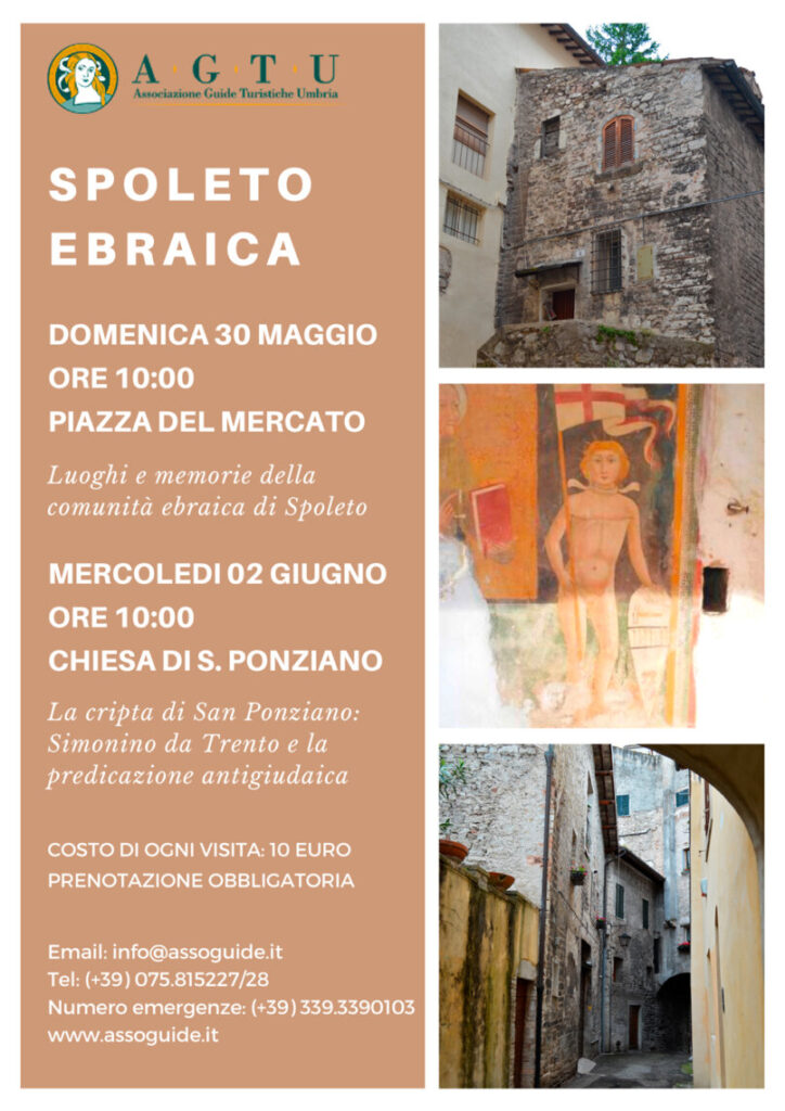 L’AGTU (Associazione Guide Turistiche dell’Umbria), il 30 maggio e il 2 giugno mattina organizzerà due eventi dedicati alla scoperta della Spoleto ebraica.