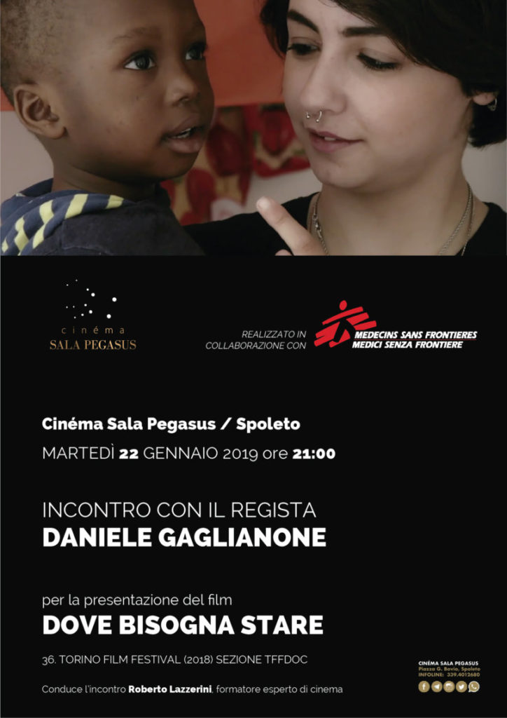 Martedì 22 gennaio alle ore 21:00 sarà ospite in Sala Pegasus il regista Daniele Gaglianone per la presentazione del film DOVE BISOGNA STARE, realizzato con il sostegno di Medici Senza Frontiere.
